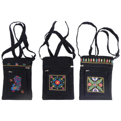 Black Passport Bag with Assorted Embroidered Design.