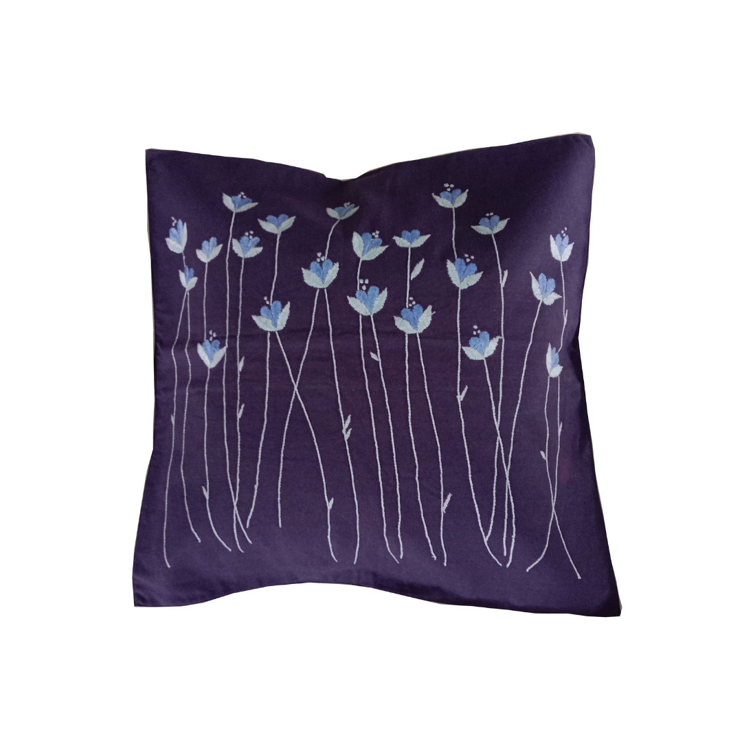 Blue Base Small flower with stem design Cushion Cover.