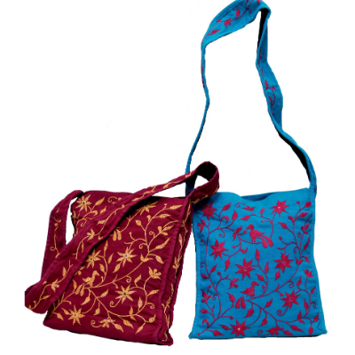 The beautiful handmade Floral embroidered works with thread and mirror work on maroon and blue Shoulder bags portrays  ethnic Indian styles.