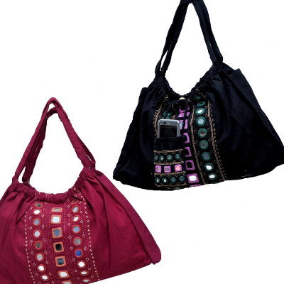 Midnight Embroidery Shoulder Bag With Mirror Design.